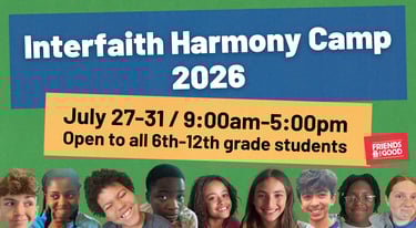 Our 11th annual camp will take place July 27 - July 31, 2026 daily from 9am - 5pm. Each day, camp moves to a new location so participants can learn about the religion and culture of that particular space. Previous host sites in the past have been The Islamic Center of Greater Cincinnati, Adath Israel Congregation, Bethan Adam Congregation, St. Barnabas Episcopal Church, Knox Presbyterian Church, The Bahá'í Center of Cincinnati, The Third Way Peace Fellowship, ish, and others.